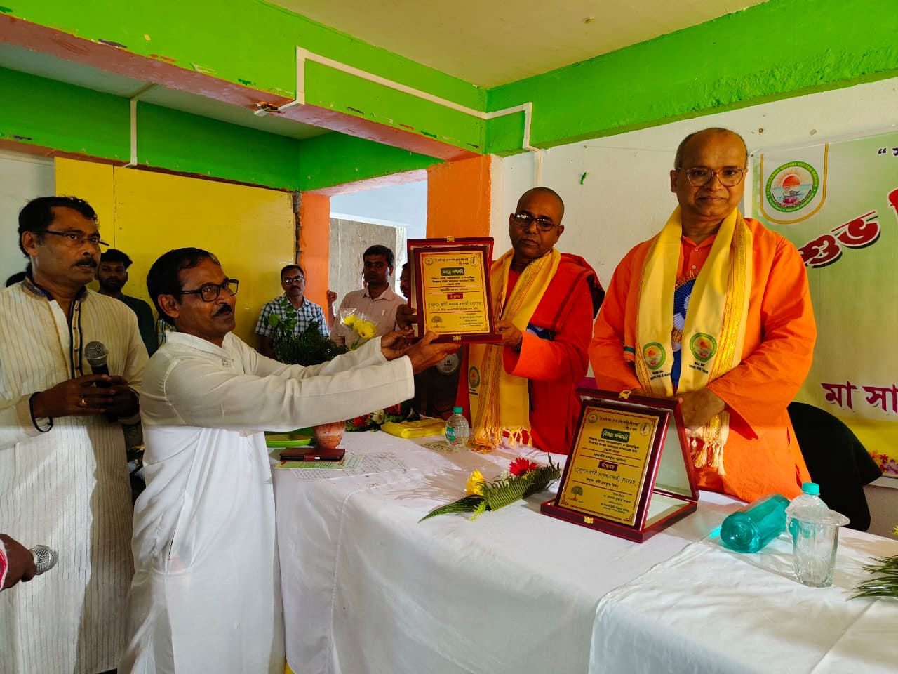 Maa Sarada Krishi Vigyan Mandir (MSKVM) is a charitable based philanthropic organization named after The Holy Mother Sri Sarada Devi, is the center of all inspiration, was started its journey on the North bank of the river Kanshavati in the year 2009 by the blessings of Revered Pravrajika Karunaprana Mataji , Secretary, Ramkrishna Sarada Mission Shillya, Burdwan with its mission to worships the people as Shiva in obscurity and the vision is to uplift the under privileges section of the society irrespective of Caste, Clime & Creed. Keeping in the view of the very needs of the poor and the downtrodden, the organization (MSKVM) has been working sincerely and silently since its inception in the field of Agriculture, Health & Education with the help of some dedicated Agricultural Scientists, Teachers, Doctors, Nurses and Well Wishers. The dream of the organization is to uplift the farmers family from poverty stricken condition and to increase farm income, educate the children and to make them sound health and also to make a Model Village near its vicinity and for this reason a seed was put in the village name Barkola where most of people are lives in Below Poverty Level and depends on Agriculture with a poor literacy rate. To carry forward the legacy of Holy Mothers love amongst all and worship them as Shiva, the organization is mainly focusing on Agriculture, Health and Education of the surrounding peoples and established Nivedita Free Coaching Centre, Farmers Training Centre, Vivekananda Students Home through which disseminating the knowledge based training and demonstration in the respective field, organization of health awareness camp and providing free education and breakfast, educational aid and garments etc.